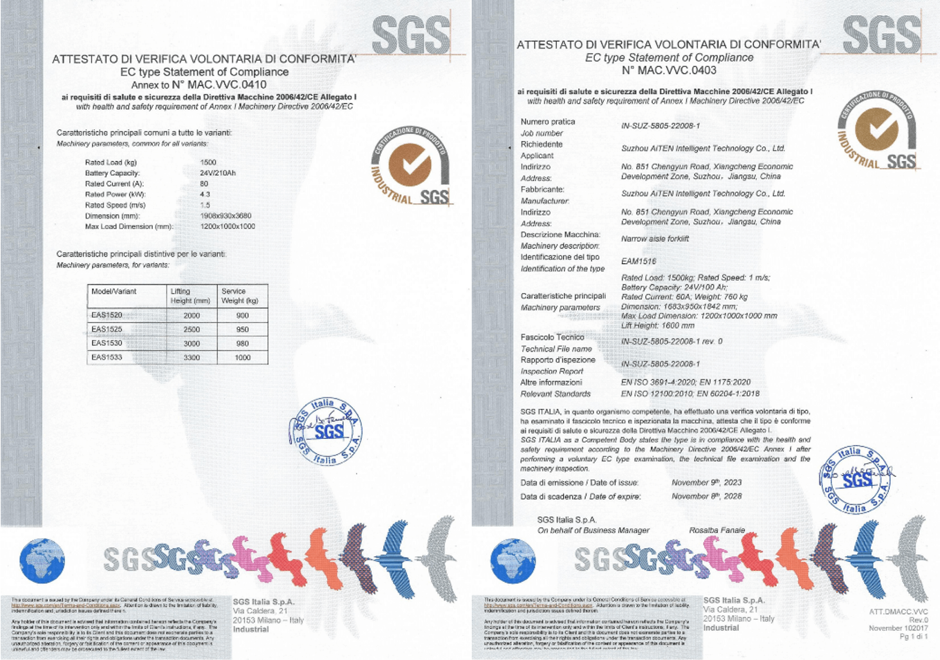 3. CE 标志(欧盟): 确保符合机械指令,强调对繁忙仓库等动态环境的风险评估,在这些环境中,叉车与行人和手动设备相互作用。为满足欧洲市场的法规要求,乐鱼体育产品经过严格审核,为包括 MP10、AM1516、AE15、AS15 和其他产品在内的 AGV 产品获得了欧盟 CE 证书。
